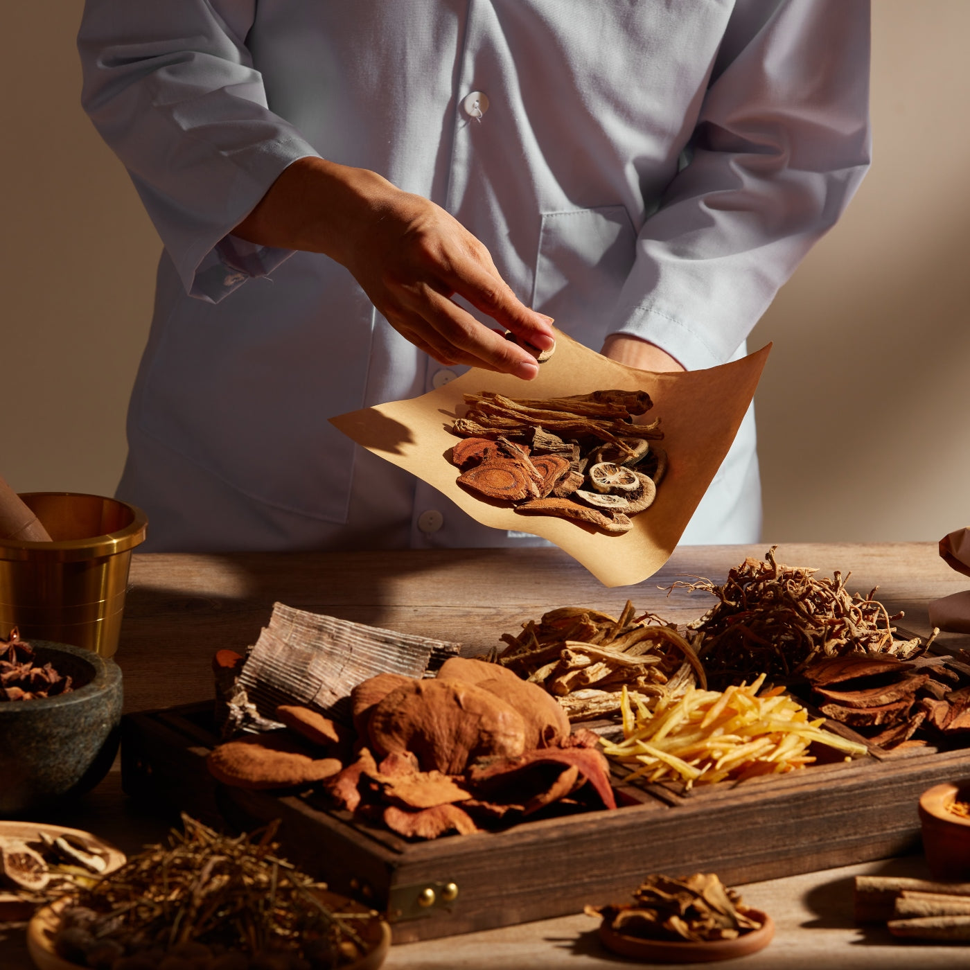 Jiaogulan, Sanchiblüten, Traganthwurzel, Rotwurzsalbeiwurzel, Steviablätter, Süßholzwurzel, Curcumawurzelknollen
